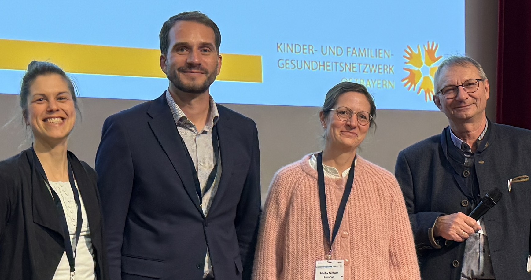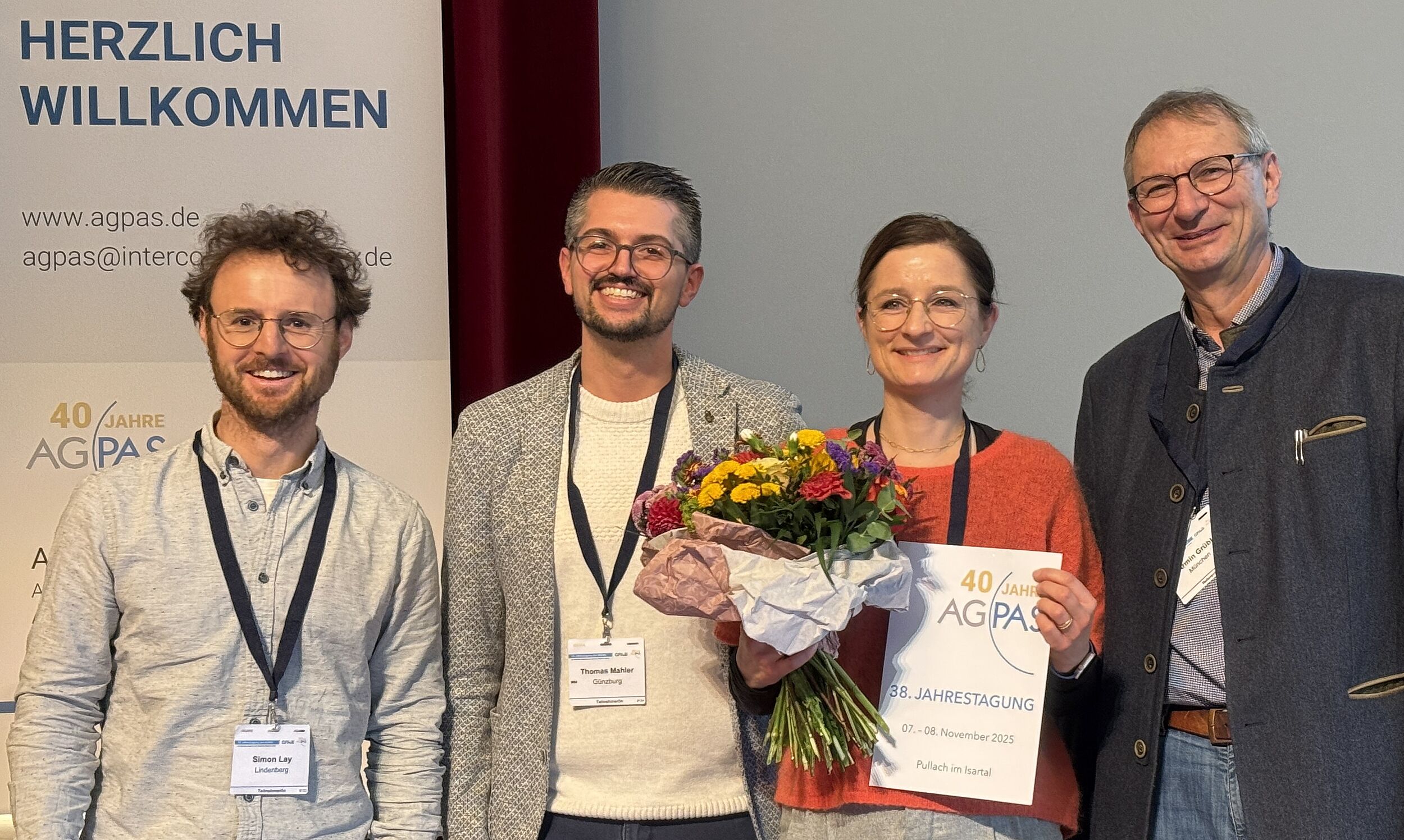 Simon Lay und Thomas Mahler von der AGPAS-Posterkommission, die Preisträgerin Maria Schütz, Armin Grübl